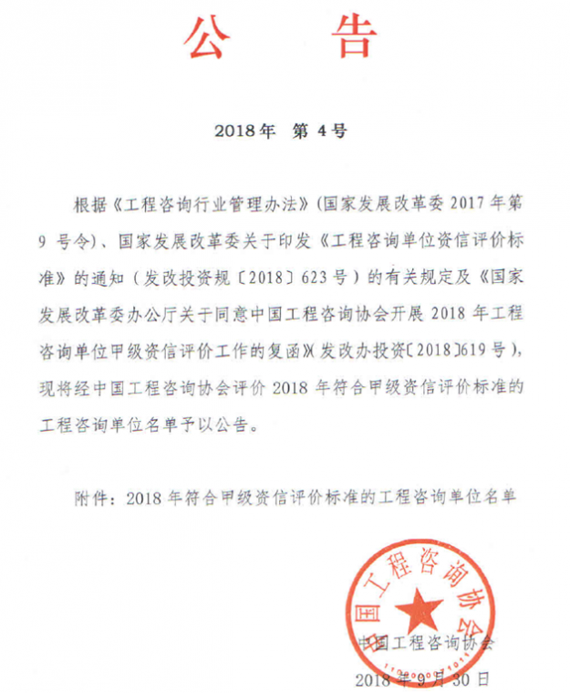 根據(jù)中國(guó)工程咨詢協(xié)會(huì)開展的《2018年工程咨詢單位甲級(jí)資信評(píng)價(jià)工作》要求,經(jīng)過中華人民共和國(guó)住房和城鄉(xiāng)建設(shè)部的評(píng)審,我院建筑、市政公用工程兩個(gè)專業(yè)符合甲級(jí)資信評(píng)價(jià)標(biāo)準(zhǔn),這意味著我院在工程咨詢領(lǐng)域又邁向了一個(gè)新的臺(tái)階。